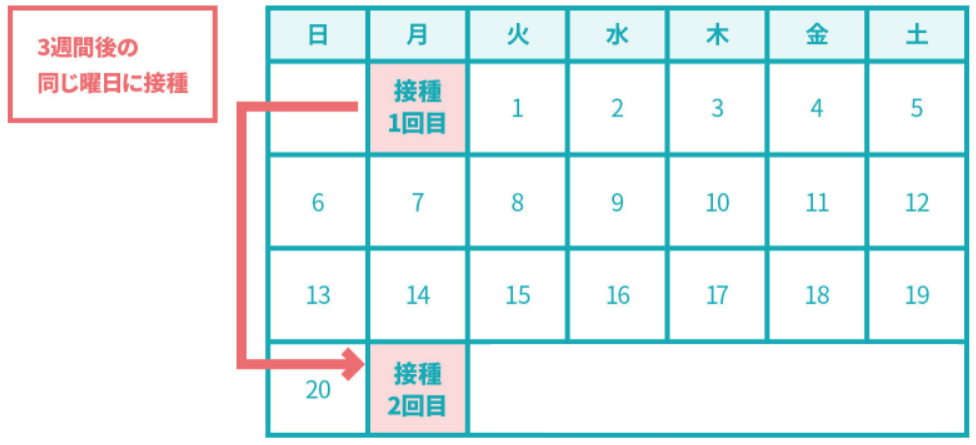 ※ワクチン接種には自治体発行の接種券が必要です。お手元にあることをご確認の上ご予約下さい。 ※原則接種日の変更はできません。例えば2回目の接種日(1回目の接種日から3週間後)のご都合が悪い場合は1回目の接種日のご予約から取り直しをお願いいたします。